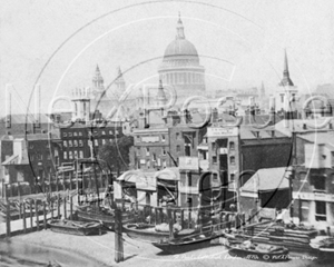St Paul's Cathedral from the South Side of the Thames looking over Coal Barges in London c1890s