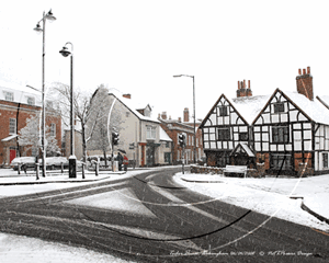 Tudor House, from Broad Street, Wokingham in Berkshire on the snowy Sunday morning of the 6th April 2008