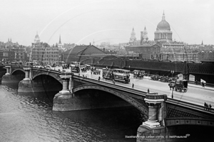 Busy Blackfriars Bridge and The River Thames in London c1910s